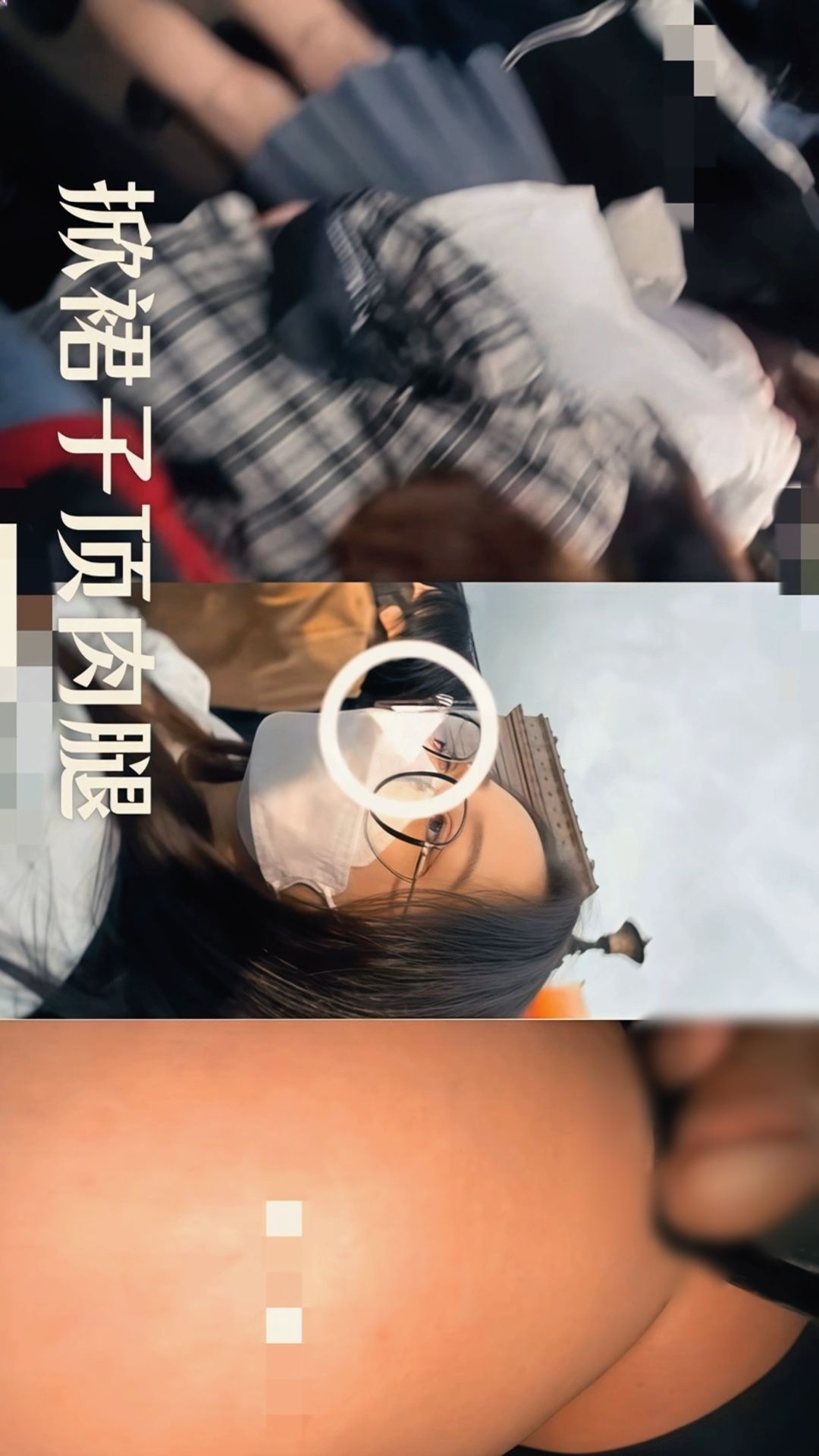 【重磅】顶臀系列 地铁牛仔翘臀女大 JK眼镜娘肉腿顶内裤